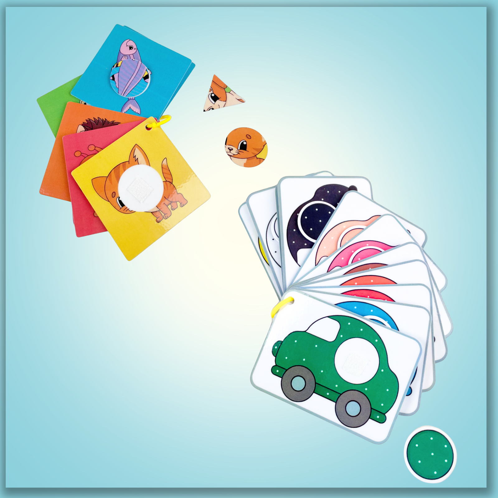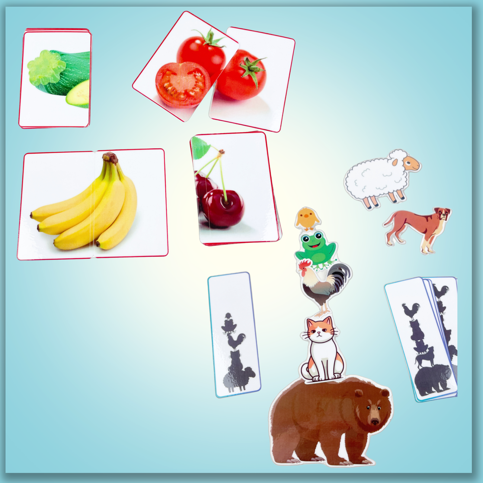 يحتوي على أنشطة ممتعة لتعلّم الألوان من خلال بازل قطعتين للفواكه والخضروات، تمييز الأشكال مع الحيوانات، وتصنيف ظلال الحيوانات. يساعد على تنمية التركيز، المطابقة، والمهارات الحركية بطريقة مرحة وآمنة.
